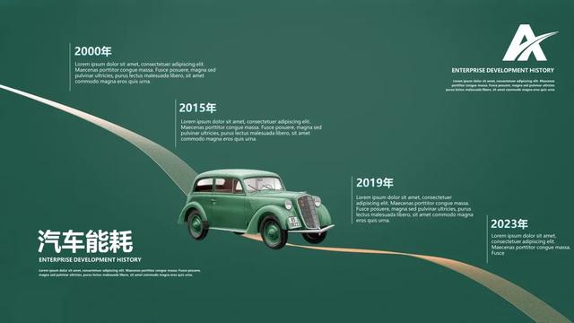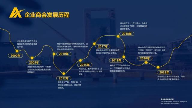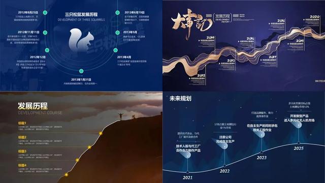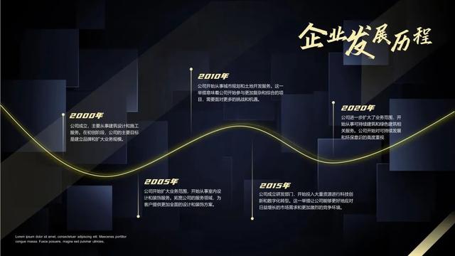 使用曲线工具模拟地图公路走势的方式绘制时间轴,可以为发展历程增添更多的色彩和创意。