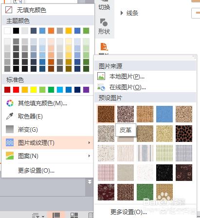 在此选择图片或纹理选项,弹出子下拉菜单,可以对文本框添加相应的纹理: