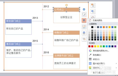 鼠标选中公司成立文本框,弹出快速工具栏,选择颜色填充,弹出下拉菜单: