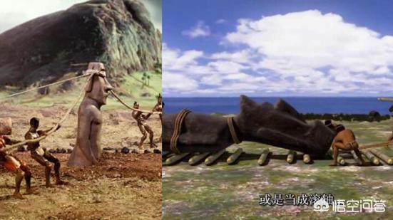 其中,石像制作完毕后,通过石像与石床分割,运输到指定的位置,石床与石像分离后,有以下几种运输方法,一般把树木当成木椿结合绳索牵引使用,或者把木头当成滚轴,或者利用杠杆原理,甚至还在全岛建立了横轨,把石像放在上面,一点点运输。