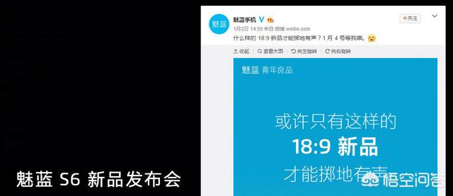 首先可以看出魅蓝本次的宣传图“18:9新品”字样做了加深处理,2017年是全面屏手机爆发式增长的一年,从小米MIX2到OPPO R11S各大厂商都在推出自己的全面屏手机,除小米推出的全面屏2.0外,其余各大厂商所谓的全面屏均采用18:9屏幕,这也成了全面屏的标准,即屏幕比例达到18:9即为全面屏手机,而魅蓝这次在官方微博的新品宣传语则为“或许只有这样的18:9新品才会掷地有声”说明魅蓝S6没有在吹嘘自己的手机是全面屏手机,而更多的则可能在掷地有声上。