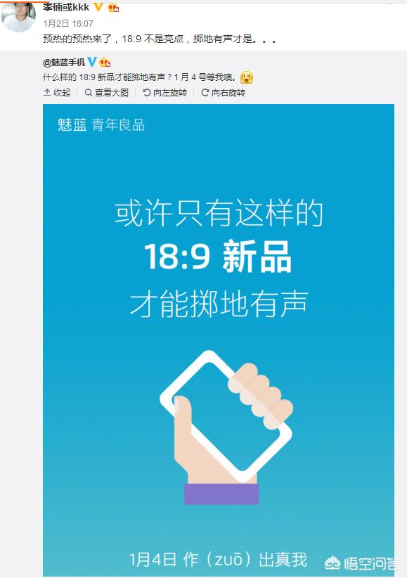 关注数码手机的朋友注意到了魅蓝官博这两天发的海报,先是18:9和掷地有声这两个关键词,之前李楠做直播的时候就说过魅蓝将在2018年推出全面屏手机,尤其是他还用了一个“伪全面屏”来表示魅蓝也会应应景出几款这样的机器。