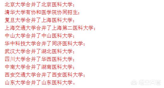 我们在盘点今天顶尖的那些985高校的时候,发现几乎90%以上的高校都曾经合并了医科类强校,并由此推动了自身的迅速发展。耳熟能详的那些顶尖985高校,北大、清华、武汉大学、华中科技大学、四川大学、中山大学、中南大学.......