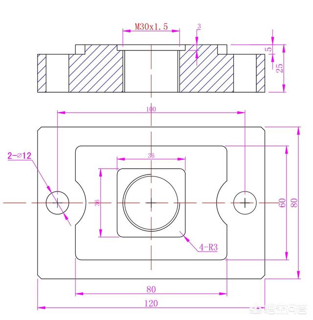 如图所示,加工零件几何中心的M30X1.5内螺纹。