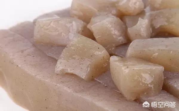 魔芋的做法是用植物的根块磨成浆,加热煮开加入生石灰水,冷却后凝结成块状物,切开就可以食用了。