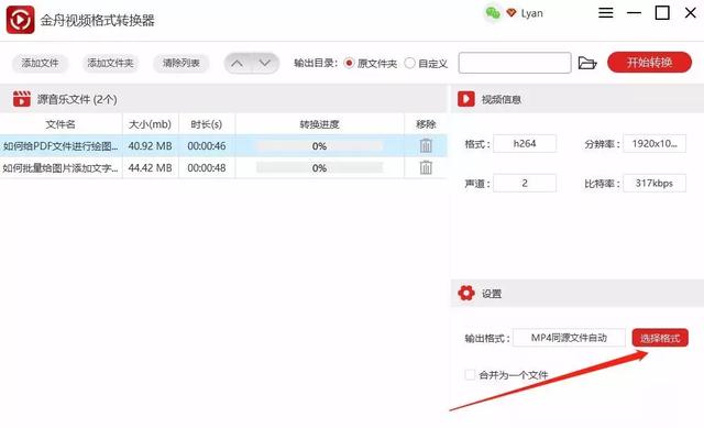 第二步、上传好文件后,在软件的右下方的设置中,点击“选择格式”选择需要的格式等。