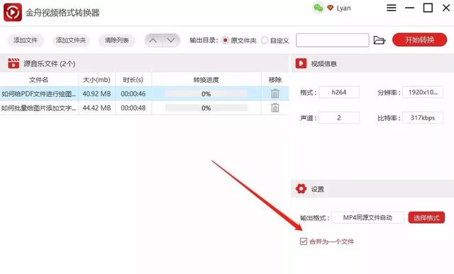 第三步、在这里,我们勾选“合并为一个文件”即可,拖动视频位置可调整播放顺序哦。