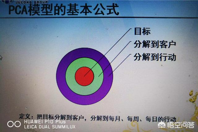 一套模型,就是PC A销售模型,六个方法,分别是,P是目标+C是客户数量+a是业务行为。
