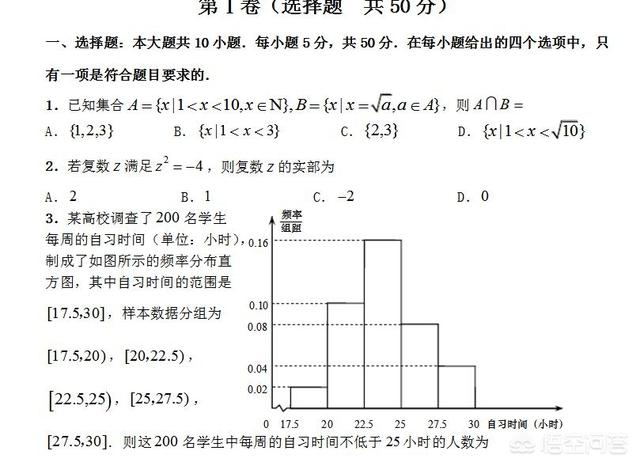 就像这样,第一题很多时候是有关集合的问题,第二题是有关于复数的计算问题。