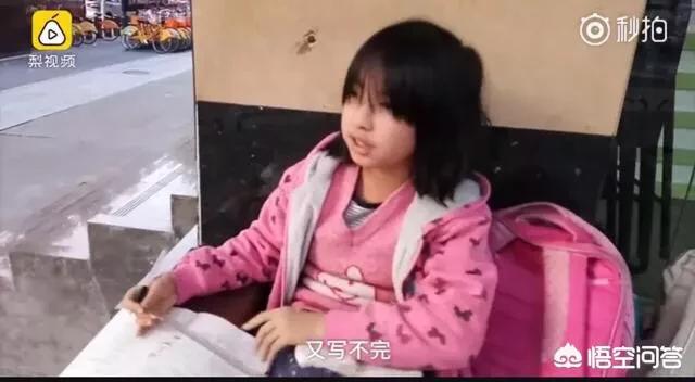 这是1月16日佛山街头一名五年级的小女生坐在台阶上认真写作业时的回答。