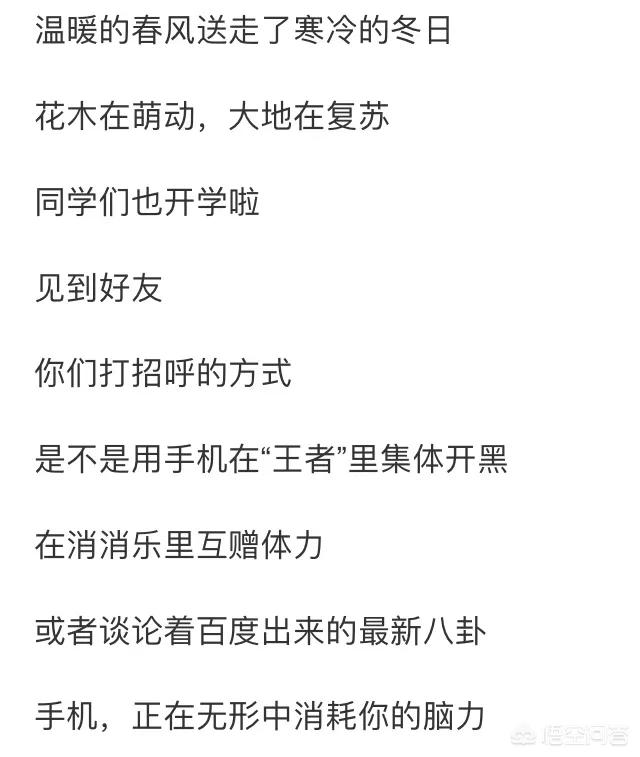 在写这篇文章之前,大猫想先问大家一个问题:为什么南京九中校长的开学演讲会火,为什么大家都承认他说的这些话?因为这些话引起了几乎所有人的共鸣,不仅是学生,社会上个色各类的人都成为了手机奴。随着手机的普及,每个人最起码都有一部手机,手机的普及给我们带来了便捷,但同时也扰乱了我们的生活!
