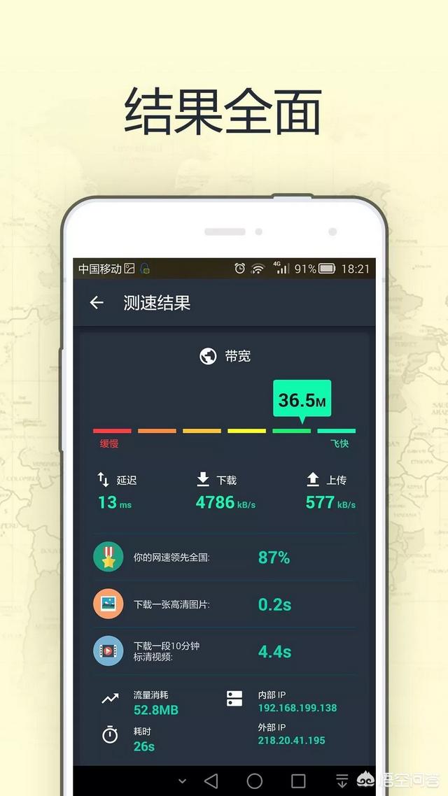 速度快说明你周围的信号好,用户少,反之信号差或者用户多。