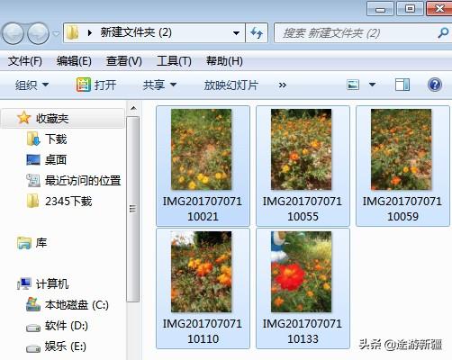 4、双击打开文件夹,把你想要发给对方的照片全数拖到文件夹里面,或者复制你想要发给对方的照片,然后这你粘贴到你刚建的文件夹里面即可,如下图: