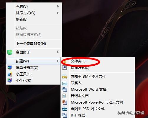 1、首先打开电脑,在电脑桌面点击鼠标右键,就可以看到右键菜单里面有个新建选项,点击新建选项,如下图: