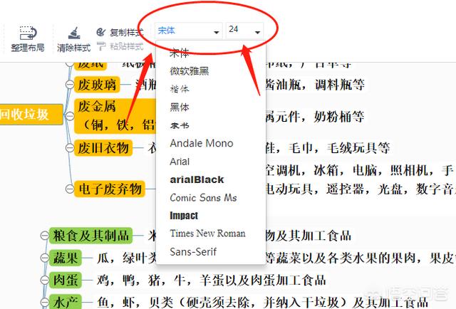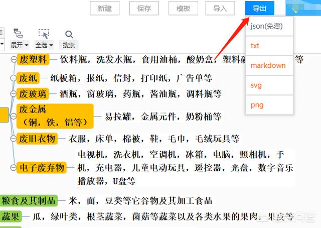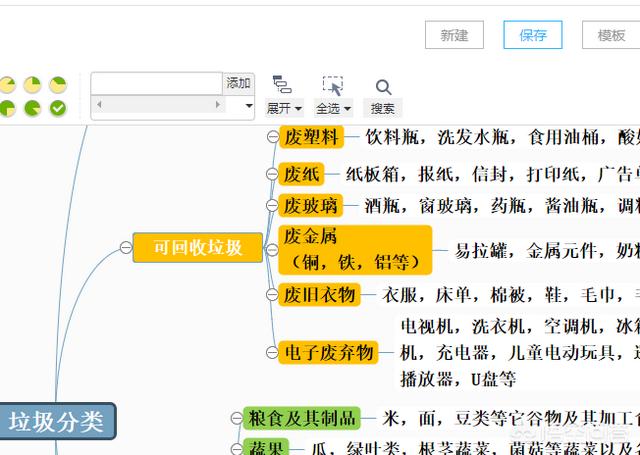 双击思维导图节点可以对其内容进行填充使用,填充的内容是围绕垃圾分类所延伸的内容,较为方便。