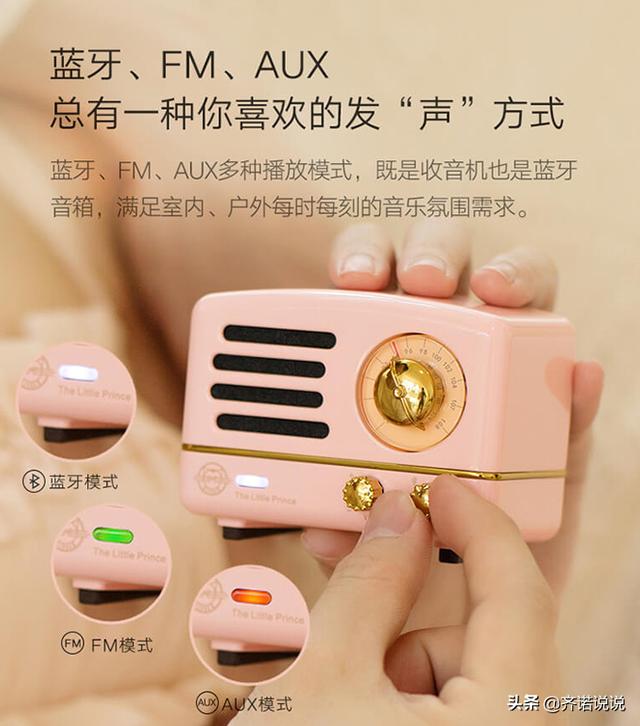 有蓝牙音箱,收音机,音频输出,三个功能。音质很好收音效果也很好