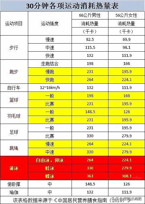 2.不同的泳姿消耗的能量也有所不同。燃烧卡路里最多的是蝶泳,10分钟内你甚至可以燃烧150卡路里。但是,我们中的大多数人游十分钟都很困难,更不要说蝶泳这种稍难的泳姿。所以,我推荐你游自由泳。它更容易学习,而且相同强度的游泳消耗的能量仅次于蝶泳。