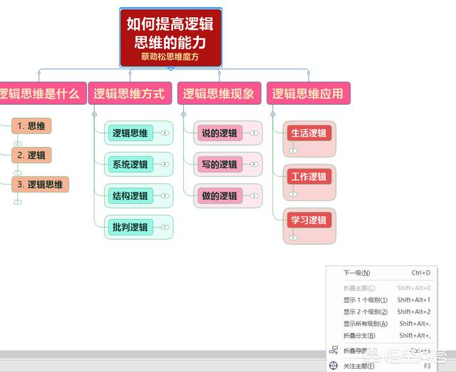 因为导图分支很多,这样展示的面积非常大,如果全部打印时,会影响阅读效果,因此要有选择的打印局部;一般通过控制折叠的层次,开控制打印的面积: