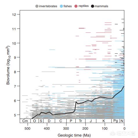 2015年2月20日发表在science杂志上的研究证明在过去的5.42亿年间,海洋动物的平均体型增加了150倍。科学家收集了的包括五个主要海洋动物类群节肢动物、腕足类、脊索动物、棘皮动物、软体动物的17000个属的体型数据,结果显示虽然不是所有种类的物种和属的动物都趋向于进化出更大的体型,但随着时间的推移,那些体型更大的动物往往会变得更加多样化。