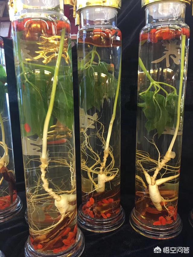 【配方组成】人参20 克,熟地100 克,枸杞子350 克,冰糖400 克,白酒10 升。