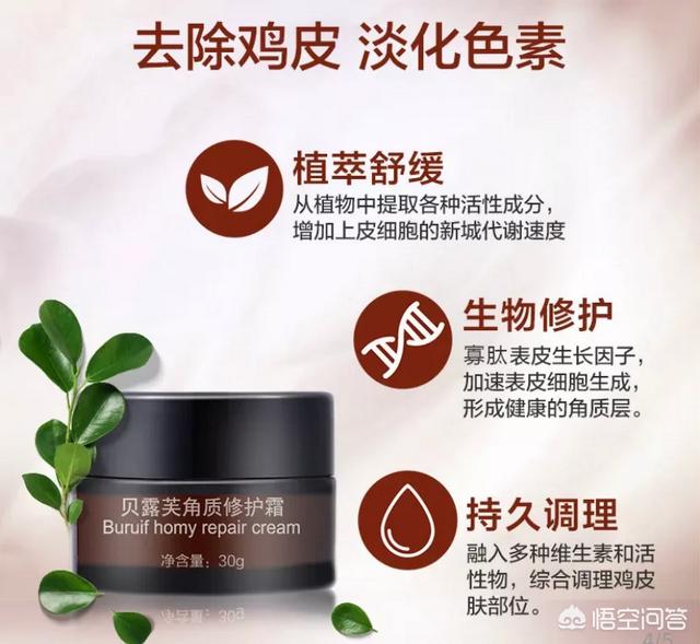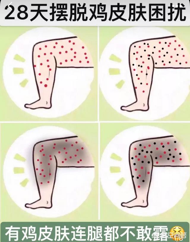 1.首先用去角质产品先把堵住毛孔的组织祛掉,大 家都知道正常我们的肌肤是通畅的,是会呼吸的 而产生鸡皮肤的主要原因就是我们清理脏垃圾不当导 致毛孔毛囊堵塞日积月累下来我们的肌肤不能够呼吸 ,就沉淀成了密密麻麻的颗粒状鸡皮肤