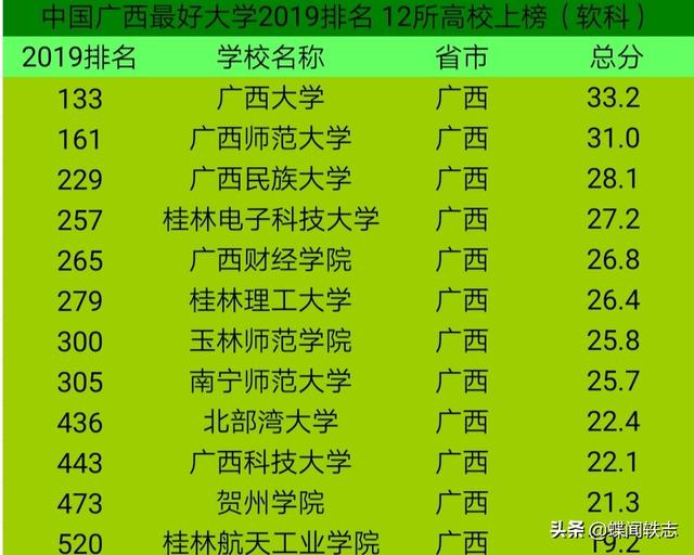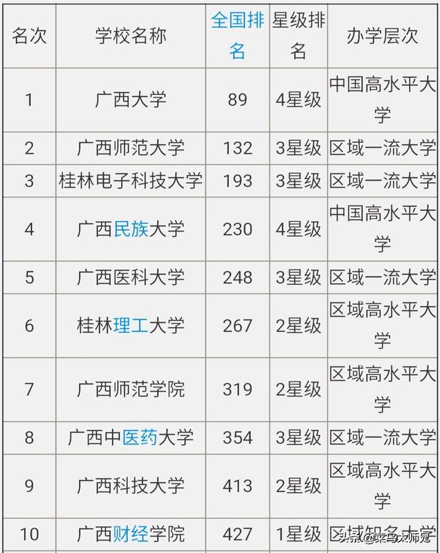 要问我们广西最好的10所大学,我这个从教13年的高中老师算得上是最有研究了,毕竟也算是指导很多学生高考填报志愿了嘛。这里把今年的最新排行数据分享给大家: