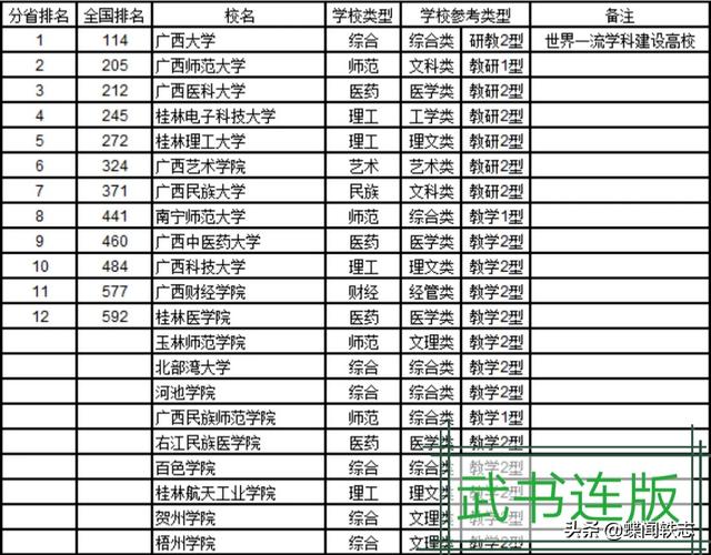 一、“武书连版本”2020年广西壮族自治区前10高校排名如下