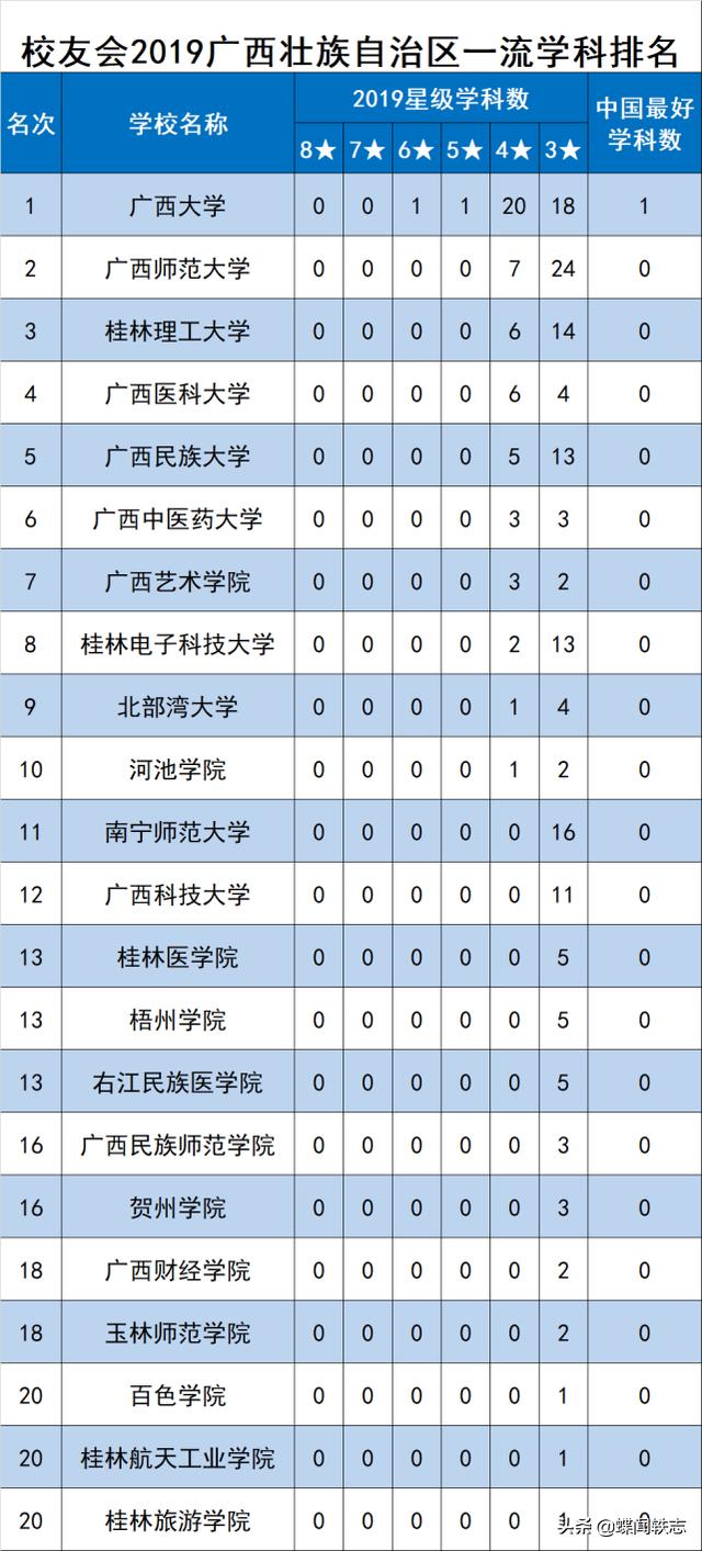根据“软科版本”220年广西高校评估10强排名,让我们一起来看看广西壮族自治区排名前10名高校各自的优势专业有哪些――