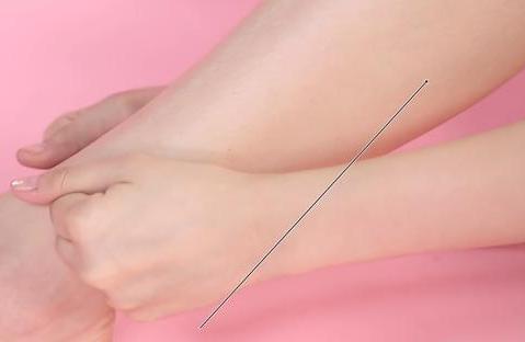 第三步:从大拇指按摩小腿外侧,由下至上。