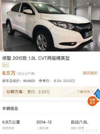 根据我的女同事介绍,这台本田缤智是2015款的1.8L CVT两驱精英型,于2014年12月上牌,目前已经行驶6.8万公里,同事说我要的话8.5万元就可以卖给我。我特意在网上对这台车进行了一下估值,该车的市场价格在8.54万元到10.03万元之间,看来女同事给我的价格不算高。不过,买车毕竟不是一件小事,还是要对整台车做一个综合了解再做决定。