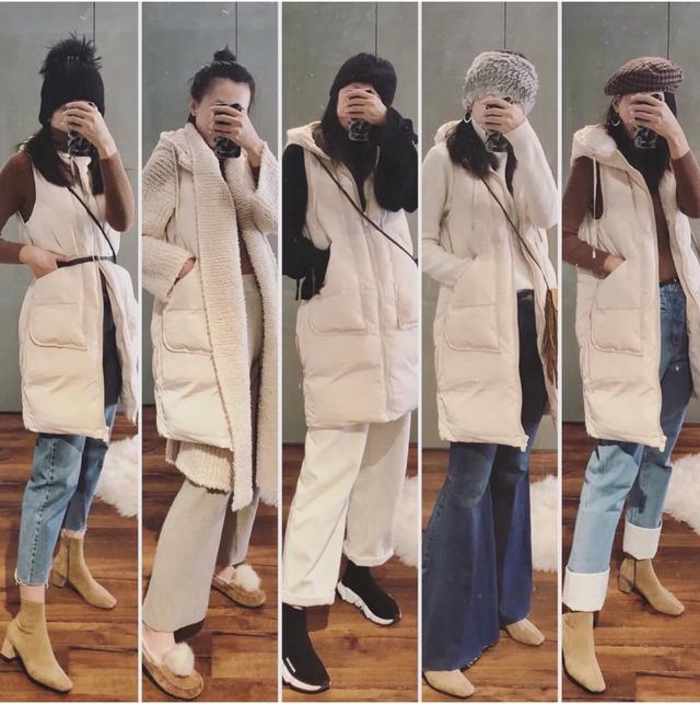 羽绒马甲里可以套上一件长款的毛衣开衫,