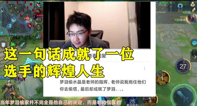 偷掉了就赢,就是鲜花与掌声,偷不掉就输,甚至可能断送掉自己的职业生涯,一脚天堂一脚地狱,没人知道下一秒会发生什么,此时不仅选手们心跳的厉害,就连观众们的心也跟着提了起来,所以有很多选手就这样一偷成名,其中就有AG的梦老师,凭借无兵线偷水晶一战成名。不过泰神在休赛期的直播中爆料:AG梦泪偷水晶的荣誉不仅仅是属于他,除了名刀和宗师的细节外,老帅的1句话立下大功。那么老帅说了什么呢?