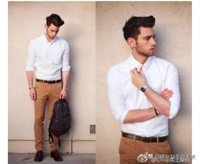 问这个问题的应该是个男士吧?那今天我们来聊下男士衬衫休闲裤咋配鞋的!纯白色的衬衫,干净简单百搭。在搭配休闲裤时容易将整体比例拉低,如果身材比例不够完美,可以使用腰带调整比例,鞋的颜色可以跟腰带做个呼应!