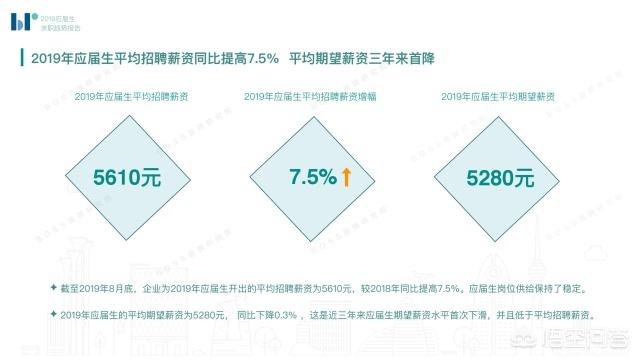 应届留学生的薪资远高于应届生薪资,19年应届生平均薪资约为5600元,19年应届留学生平均期望薪资约为9200元。