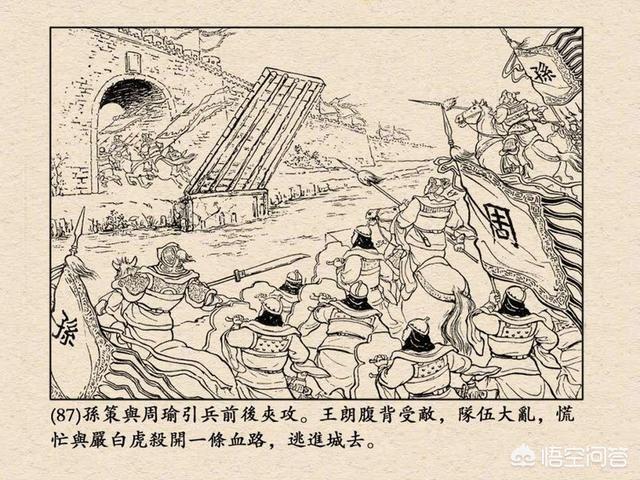 前边大体一样。只是对战过程稍有改动。却说王朗与孙策一番骂战之后,孙策大怒,正待要亲自出马,却被太史慈抢先一步。王朗截住太史慈厮杀,战不数合,部将周昕助阵,黄盖截住厮杀。正斗到深处,王朗后军突乱,周瑜、程普各自杀出。王朗寡不敌众,与白虎等杀条血路而走。