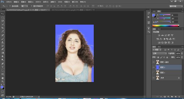 这时候你可以随意更换素材背景了,只要是颜色别太深都可以,不过注意换背景后要适当调整一下人物的颜色,不能显得太假。
