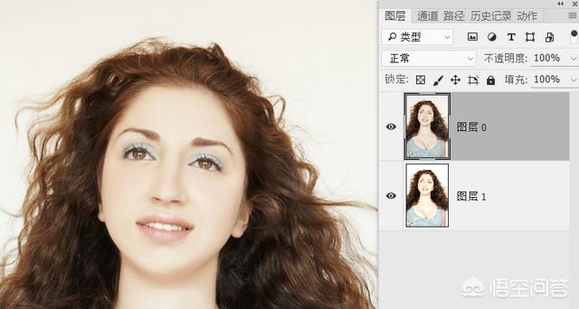 3.双击背景图层解锁,得到图层0,将调整好背景的图层1与图层0上下互换。