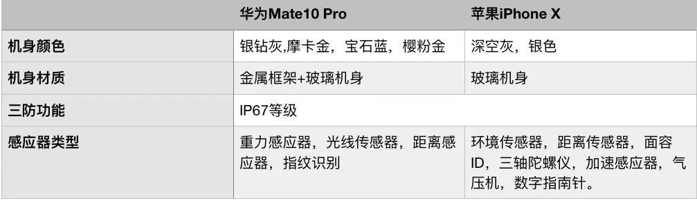 外观上,HUAWEI Mate 10 Pro的选择更多,风格更硬朗,iPhone X比较圆润,HUAWEI Mate 10 Pro配备了指纹识别模块,iPhone X直接取消。