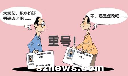 身份证号码不存在重号的说法,从出生第一次登记户口开始就有了唯一的身份证号码,不论你户口地址怎么迁,号码都不会改变。或许是有人制作跟你身份证一样的 假的 身份证,办理银行卡,遇到这项事情,要非常注意,防止他人用你身份证号码办理信用卡等,将来会影响到你。
