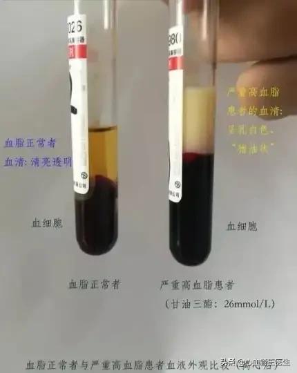 这是乳糜血,简单说就是血脂可能太高了,正常血脂的人,抽完血静置或离心后,血液上面是透亮的,我们叫血清。如果血脂过高,试管放置一段时间后就会发现血液上层出现一段乳白色的液体。造成这种血液垃圾的原因,一方面就是长期的不健康饮食导致了血脂升高,或自身遗传血脂太高;另一个原因可能抽血前,不是空腹,或近期吃了大量油炸肥腻的食物。