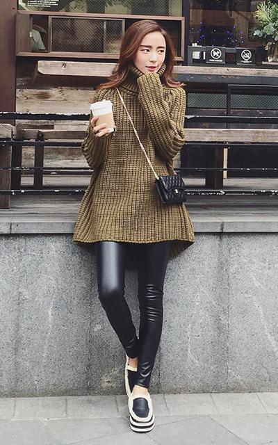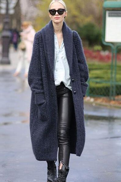 长款毛衣可以搭配皮裤?答案当然是Sure!