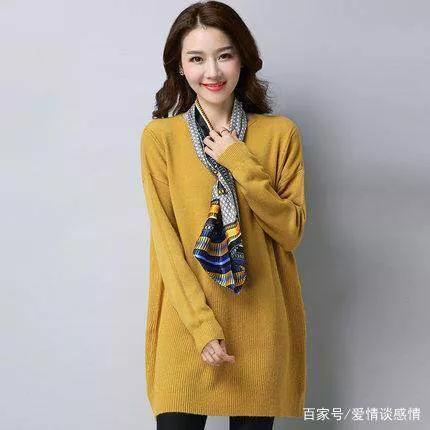 宽松大码的中长款打底衫,运用了很舒适的黄色。搭配一款围巾,视觉上层次十足有女人味。
