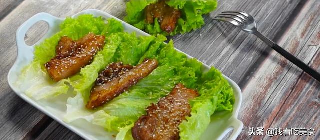 食材准备:五点花肉1斤、芝麻、生菜。