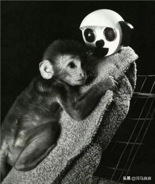 这里还不得不提一个著名的恒河猴实验。是由上世纪50年代末,美国心理学家哈利·哈洛做的。实验中,他们将一只刚出生不久的小猴子与母猴分开,并用两个假猴子替代猴妈妈。一个用是用铁丝做的,在胸部装了奶瓶可以供小猴子喝奶。另一个,是用绒布做的。但没有装奶瓶。起初,小猴子还围着铁丝猴转,可过了一段时间,他们惊讶的发现,小猴子只有在饿的时候才去找铁丝猴,而其他时间都抱着绒布猴。特别在遇到危险时会跑到""绒布母猴"那里寻求安全感。