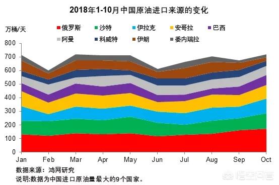 2018年前10个月,2018年前10月中国进口原油约3.36亿吨,同比增加5.9%。其中俄罗斯为中国最大原油进口来源国,在前10月进口总量中占15%,其次是沙特、伊拉克等。