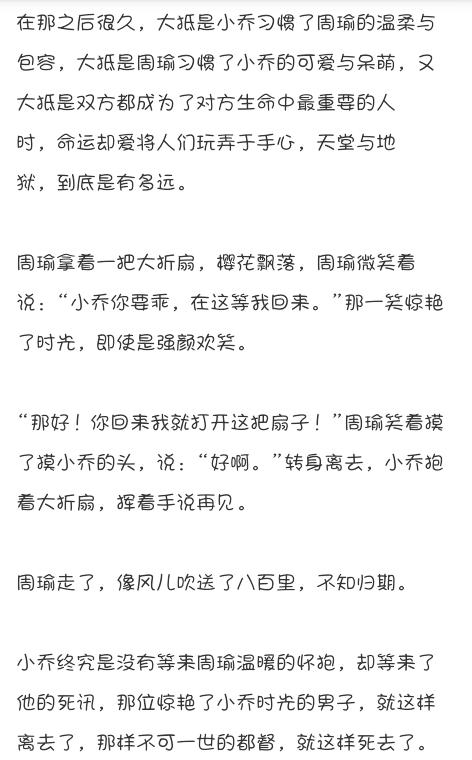 有没有关于小乔和周瑜的甜文分享?
