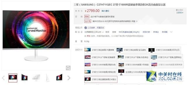 三星C27H711一款量子点曲面显示器,尺寸规格为27英寸,并拥有2560x1440的WQHD分辨率,曲率为1800R,能够满足当下用户对于大屏的需求,并且1800R的极致曲率和2K高清分辨率也为用户带来强烈的视觉包围感和真实感。
