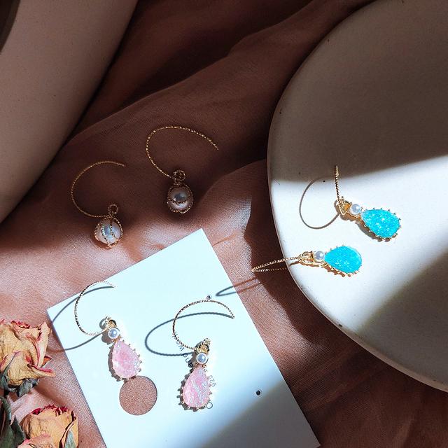 今年都很流行一些带纹路的小彩石搭配金属做成的耳环,混搭风格,怎么看都不会就觉得累。