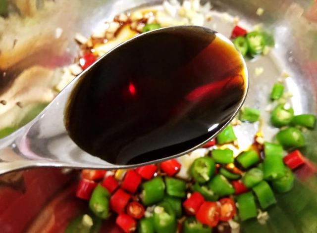 2、蒜洗干净切末,小米辣、青椒洗干净切圈,香菜洗干净切段,盆里加入蒸鱼豉油、蚝油、生抽、辣鲜露、白糖、鸡精、老抽、藤椒油、香醋、花雕酒、香油、红油,再加入纯净水,把青椒、小米辣、香菜、蒜末放进去,搅拌均匀就可以了。