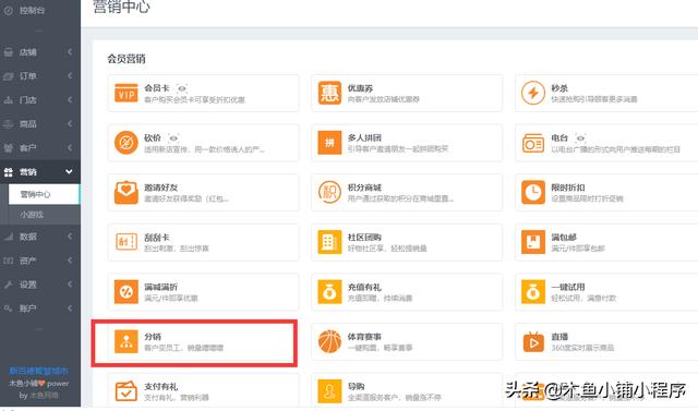 可以的,木鱼小铺的微信小程序中有分销这个功能,制作好了小程序之后,可以在小程序后台的营销中心去设置,如图: